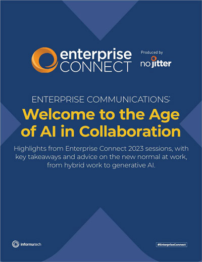 Download highlights from Enterprise Connect 2023 sessions, with key takeaways and advice on the new normal at work, from hybrid work to generative AI. The articles around this year's event reflect the issues with which we're all grappling as the ongoing transformations of how and where we work transform what we do while we're working.