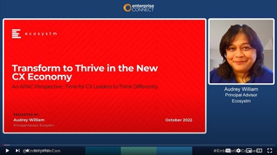 In this free session from Enterprise Connect 2023, Audrey William, Principal Advisor at Ecosystm, outlines what APAC CX leaders need to do to push the boundaries in CX delivery through the application of people, processes and technologies.